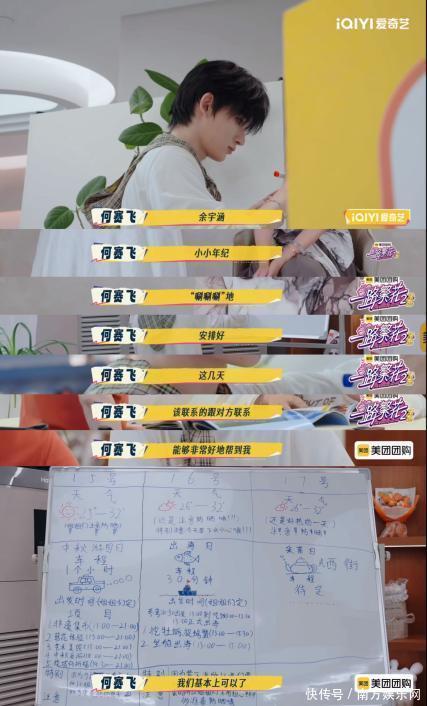 本期嘉宾阵容同样惊喜连连。阔别多期的张柏芝带着精心准备的礼物暖心回归。而时代峰峻余宇涵的加盟,则为节目注入了新鲜的活力。作为社恐i人,他主动向柯淳请教和姐姐们的相处之道,更令人惊喜的是,年纪轻轻的他立马就展现出超强的行动力:协助新任导游何赛飞订酒店、梳理行程,甚至贴心地在小黑板上写好未来几天的天气和穿衣提醒,让姐姐们一目了然,网友们纷纷感叹:“果然还是新脑子好使!”